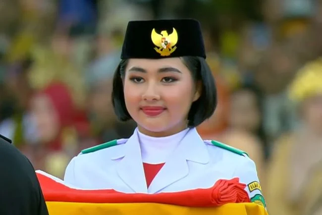 Livenia Evelyn Kurniawan, seorang pelajar dari SMA Katolik Santo Pransiskus di Kalimantan Timur, mendapatkan kehormatan besar ini. Ia terpilih untuk mengemban tugas mulia membawa baki bendera Merah Putih, suatu peran penting dalam prosesi pengibaran bendera. Sebagai seorang putri dari pasangan Eddy Kurniawan dan Luana Kalma, Livenia membawa kebanggaan besar tidak hanya bagi keluarganya, tetapi juga bagi sekolah dan daerah asalnya.